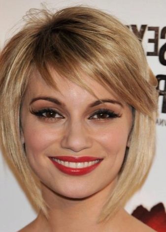 - For example, bob. It is difficult to imagine this haircut without a bang, the length of which can be different - in any case, the result will be excellent. If the bangs are long, then they need to be laid on one side, if short - straighten with an iron or blow dry, giving the desired shape. The ragged version gives the hairstyle additional volume, and the high back of the head in combination with the “one-sided” bangs emphasize the beautiful neck.