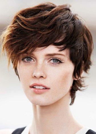 - Pixy. He is one of the favorites of this season. Such a hairstyle will emphasize a beautiful line of cheekbones and expressive eyes, and elongated bangs will only enhance this effect. If you want to hide any defects in appearance, then you should opt for an asymmetric type of bangs. She will perfectly cope with the task.