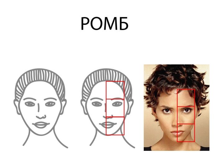 The shape of the rhombus comprises a narrow selection and forehead, as well as wide cheekbones. Haircuts should be such that their width is accented at the chin and cheekbones. Then the hairstyle will adjust the rough lines.