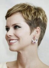 The best option for a short haircut for a woman over forty is a pixie haircut. Using different types of styling in this model, you can achieve different shades of mood: from the mysterious and playful to elegant and strict.