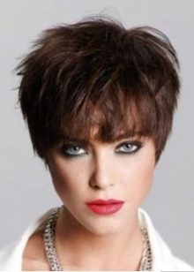 - The structure and color of hair and eyes. Blondes are more likely to styling on short hair, brunettes are available with long bangs and medium hair lengths. The curl structure also matters. In women after 45 years, gray hair appears, and the hair coarsens. For a pixie haircut, this is even better. Coarse hair is good for styling and holds a hairstyle for a long time.