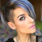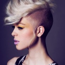 - A spectacular haircut for short hair with one shaved zone.