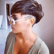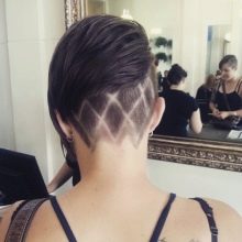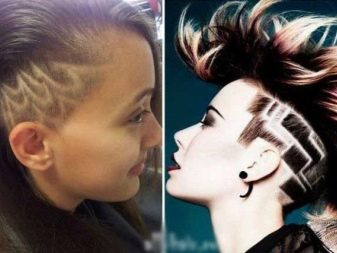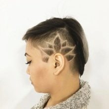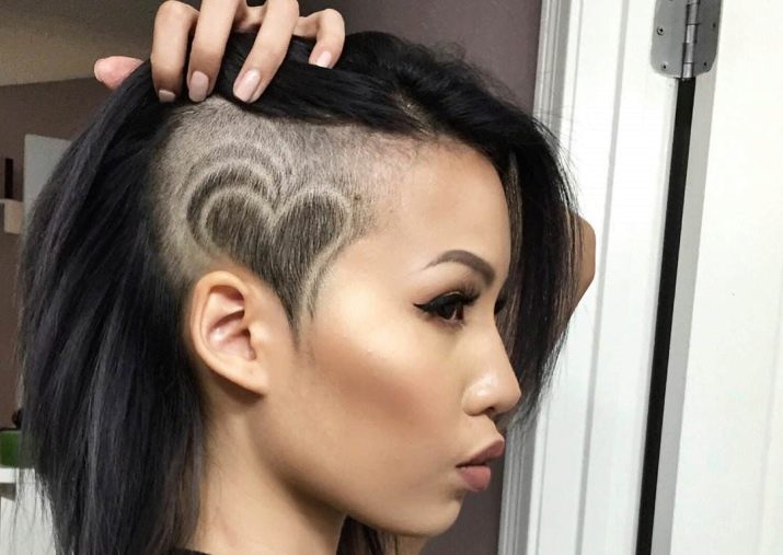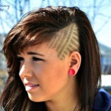 In this case, a trimmer with different nozzles is used. Depending on the preferences of the client and fashion trends, the shaved temporal part is performed stylistic pattern. Such haircuts adore celebrities and media personalities. This is the choice of representatives of youth subcultures. Today, the age groups of these haircuts are replenished with a category of 30. Such haircuts look very very femininedue to a more careful approach to their selection and execution.