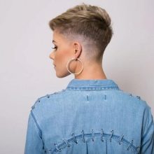 - Ultra-short haircut with a pattern that goes to the back of the head.
