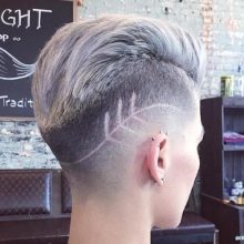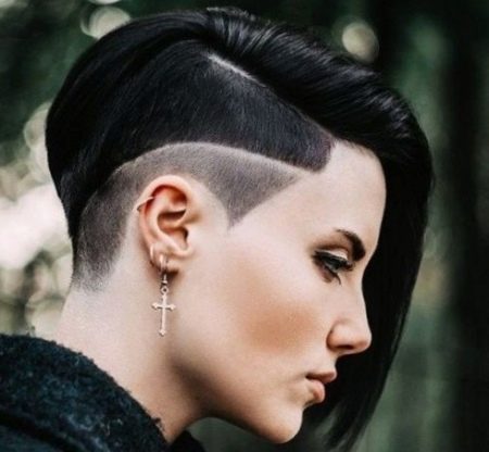 Such haircuts are adored by adolescents and representatives of youth subcultures, who adore being in the spotlight. At the same time, the temperament of the hairstyles is different: it can be a classic haircut with a small shaven zone of a hidden type or an option that deliberately demonstrates a dissimilarity to a traditional hairstyle. A creative haircut can be based on a page, a square or a bob.