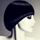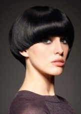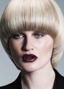 - Haircut reminds elegant hat rgeometrically regular round shape.