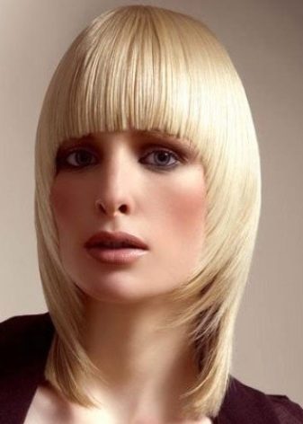 The best option for a medium hair session is a graduated type with a slanting or arched bangs.