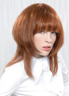 Since this haircut is combined with most design options for the upper tier of the hairstyle, the presence or absence of a bang can be the final emphasis. The main thing is to focus on the shape of the face and the compatibility of the bangs with a "hat". This is necessary to ensure that there is a tandem between the three components of the hairstyle: bangs, "cap", long curls.