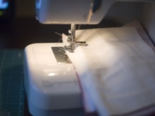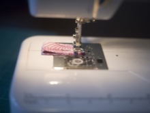 - Then, using a zipper foot on both parts, we sew a line close to the fastener.