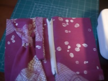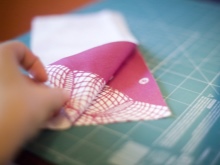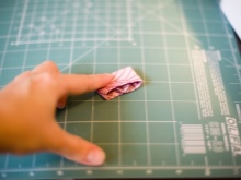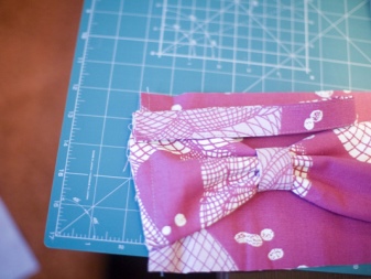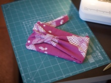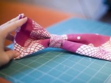 - A piece of fabric, designed for the middle of the bow, is folded as in the photo.
