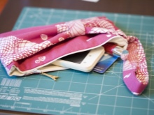 - At the end of the seams of the clutch from leatherette, you need to tap with a special hammer. It is enough to iron a textile product with an iron. This is done in order to align the seams, then the work will look neater.