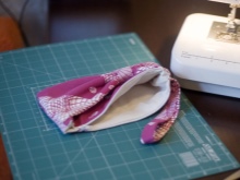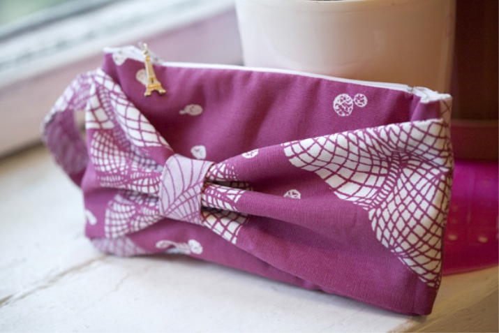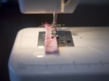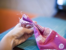 - Then at the top edge of the bow we sew the handle.