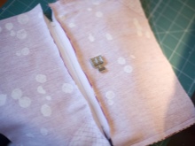 - We pin the front part and the lining around the perimeter, then flash it. Corners can be made semicircular.