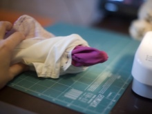 - We turn the resulting “sleeve” onto the front side and iron it.