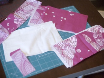 - Parts intended for the front side of the future clutch are glued with non-woven fabric. The glued parts are sewn with synthetic winterizer along the sections, then quilted in an arbitrary shape, but so that the stitch is combined with the pattern on the fabric.