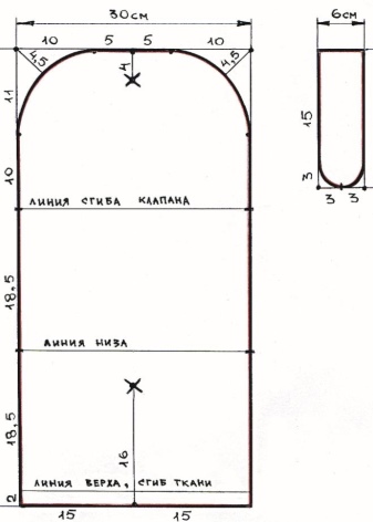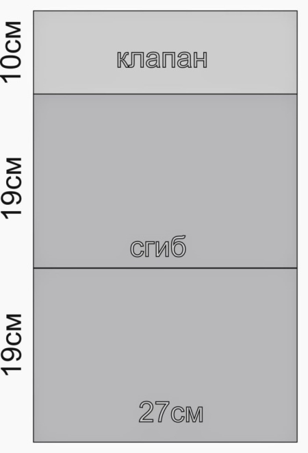 A new handbag can be made according to the simplest pattern, where a rectangular piece of fabric is conventionally divided into three parts: the front and back sides of the bag and a valve.