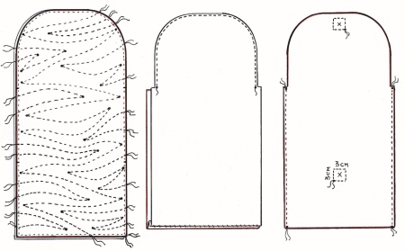 - The one-piece part is connected to the side inserts. In this case, the lining must be unscrewed. The seams are turned to the side of the inserts and hidden under the lining, securing them with hidden stitches.