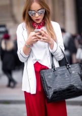 One of the decorative techniques of the designer is the use of textured material. The skin can be smooth, embossed, patent, under the skin of reptiles. In addition, the world fashion master uses high-quality metal fittings, which do not oxidize over time and contribute to increasing the strength of products. These are all kinds of zippers, buckles, fasteners, rivets, rings, eyelets, key rings, chains and even metal handles.