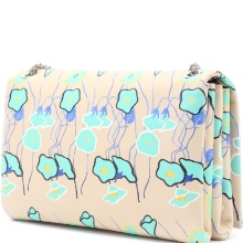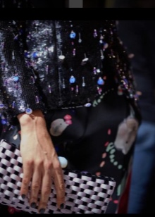 In addition to metal elements, the designer decorates the bags with sparkling rhinestones, knots from the base material, fur, brooches, tassels with fringe, pleating, beads, multilayer chiffon compositions. He draws up some models with a lacquered edging along the lateral sides, bottom and top of accessories.
