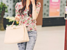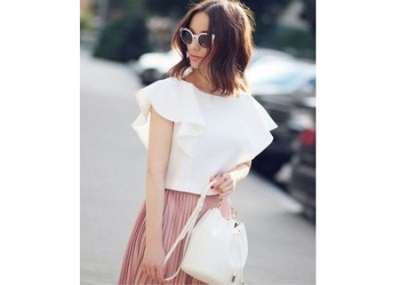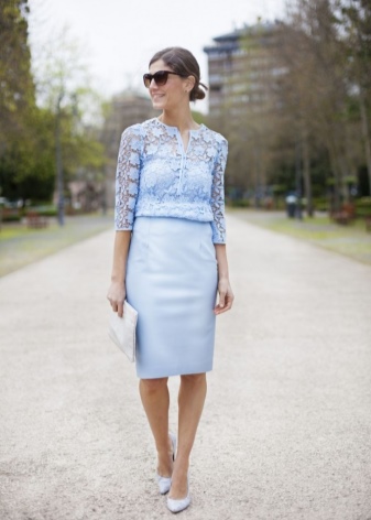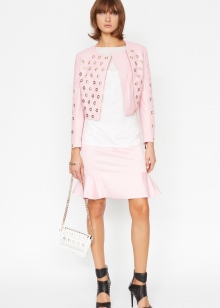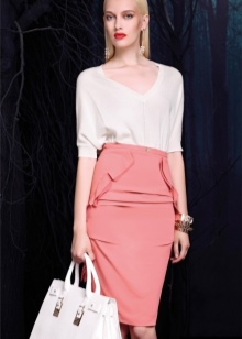 - A gentle and romantic look will turn out if you wear a light blouse with voluminous and very short sleeves, as well as a soft pink skirt made of light fabric. Such a flirty ensemble will complete a small white handbag with a chain strap.