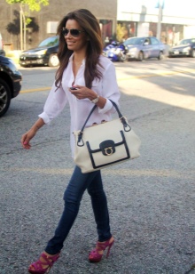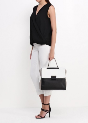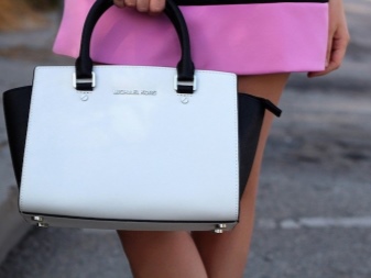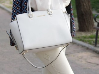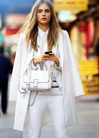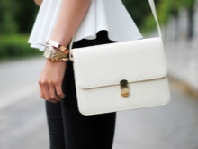 - Give up the combination of a white bag and black clothes. Such a tandem will create a contrast irritating to the eye, so it is better to refuse it. Better put on a plain pastel color outfit. Against this background, the accessory will look very harmonious.
