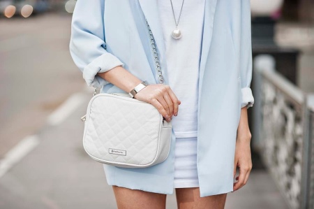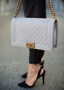 Light bags can decorate a huge number of ladies' outfits. Just try not to overload the image with white elements and do not create too catchy contrasts that cause ripples in the eyes.