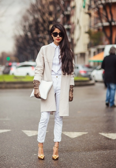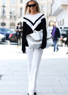 - He must be single in the ensemble. You can well decorate the image with a white scarf or shoes, but you should not combine all three elements in the kit. This can lead to a glut of white, which will look pretentious.