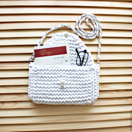 Charming handbags made of white yarn are no less popular among fashionistas. They have a unique design that can soften even the most boring female image.