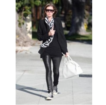 - Looking simple and tasteful is very easy. Pick up leather leggings, an elongated black sweater, put a light dark coat on top and dilute this set with black and white sneakers, a zebra scarf, sunglasses and a large white carry-on luggage.