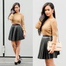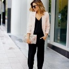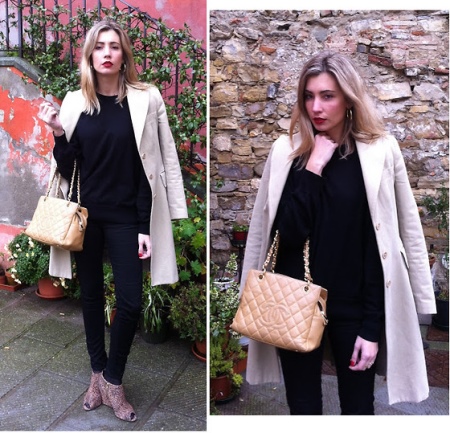 The beige bag is very versatile and there are no clear rules regarding what things it can or cannot be worn with.