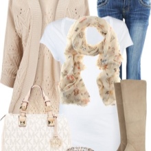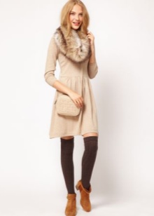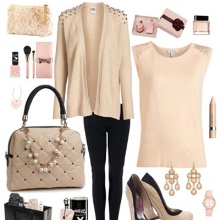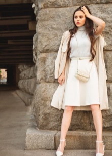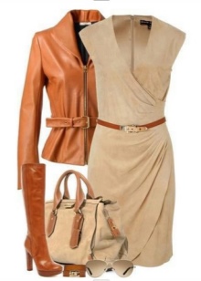 - Peach-beige shade is considered one of the warmest and most beautiful. With it, it is worth complementing the bow, consisting of plain clothes in bed tones.