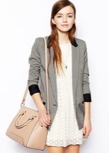 - Business and office bows suggest a stiffer bag with a long handle, which will be convenient to carry and in which important documents can not be wrinkled. Dress-style sheath, fitted jacket and classic pumps pumps complement the beige bag under the skin of reptiles.