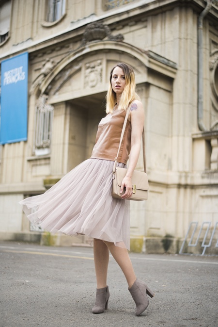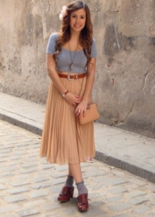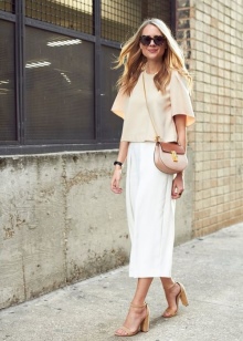 Since this summer the trend is for fluffy skirts tailored to the type of ballet tutu, it will become the most suitable option for creating a stylish urban look with a beige bag. It is worth complementing the bow with a velvet sand-shirt and suede boots - and a beautiful summer look is ready.