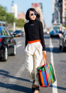 But there are small disadvantages in such things. For example, not every girl has big bags. This applies to fragile ladies of small stature.Against the background of such an impressive accessory, they simply get lost and visually seem even more stunted.