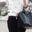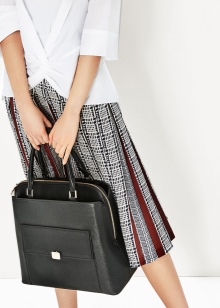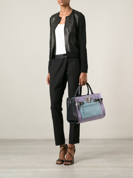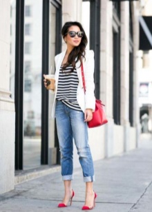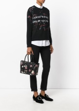 - You can complement the restrained image with the Versace bag. To do this, put on cropped black pants and a white blouse. A short dark jacket, jacket or jacket can be thrown upstairs. Choose shoes according to the season. If the summer is hot in the yard, then open sandals with a neat heel are quite appropriate.