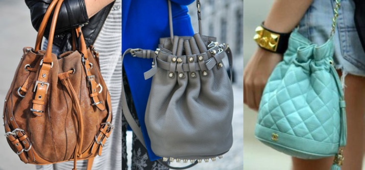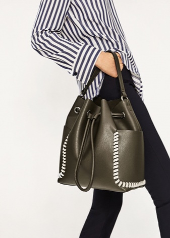 The clasp in such models is made in the form of an ordinary lace, passed through the holes on the top of the bag. If you want to close the product, then just pull the cord.