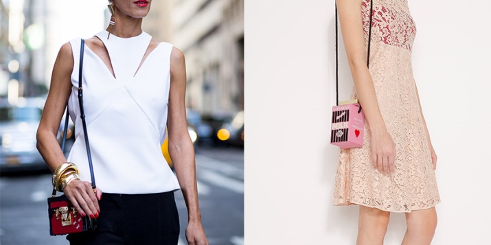 Small box bags look very interesting and coquettish. The design of these models was influenced by ordinary cigar boxes.