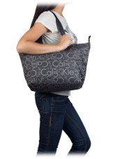 On many handbags, you can see the brand print of the brand. It is a real placer of CK emblems. They can be located on the entire surface of the product or a certain part thereof.