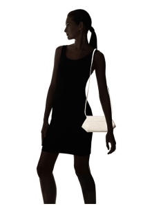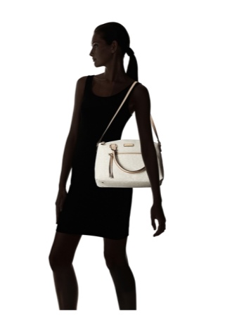 The stylish and feminine design boasts small handbags with embossing under the skin of a snake or crocodile.