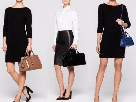 Business and classic brand bags are painted in black, gray, navy blue and white. They look great in many ladies' looks. They can be taken with you on a regular walk, and in the office.