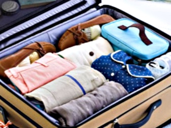 - The main clothes should be laid out in layers on a free surface: from dense to light. After that, in the center you need to place a pre-prepared roller on which all the folded layers of clothing are superimposed. You will get a voluminous bundle that can be put in a suitcase.