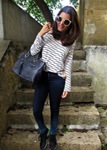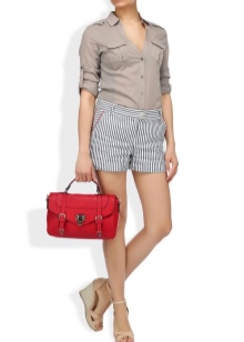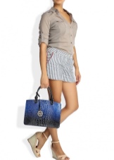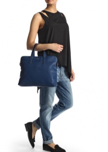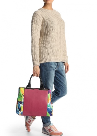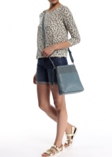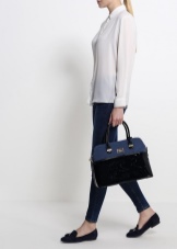 For the embodiment of everyday onions, you can pick up a small handbag in the form of a compact suitcase with short handles. The blue model with multi-colored handles is beautifully combined with your favorite jeans, a snow-white tunic and exquisite high-heeled sandals.