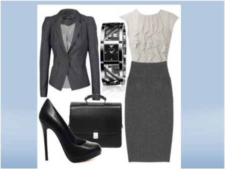 The style of a business woman consists mainly of concise clothes of strict lines.