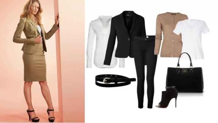 A black fitted suit will give women the opportunity to combine it with blouses and tops. A small envelope bag in the tone of the shoe will complement the business image well. A turtleneck is another wardrobe item that will come to the rescue if it is cool outside.
