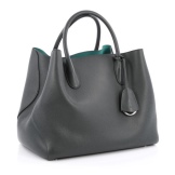 - handles are rounded, attached to the base of the bag on rings;