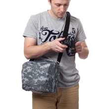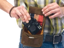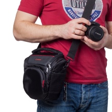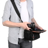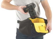 This type of accessory is rare in stores and is not suitable for transporting large cameras. The accessory is equipped with an adjustable strap secured to the belt.When carrying the bag, it must be firmly fixed so that the camera remains intact. The model allows you to free your hands, less stress on the spine.