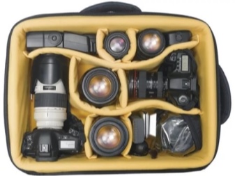 - The number of internal compartments and partitions depends on how many components a person will carry. If the owner of the camera is going to constantly take an additional battery, a cable for connecting to a computer, several memory cards and tools for cleaning optics, you should opt for models with many pockets and compartments;