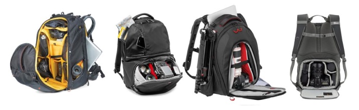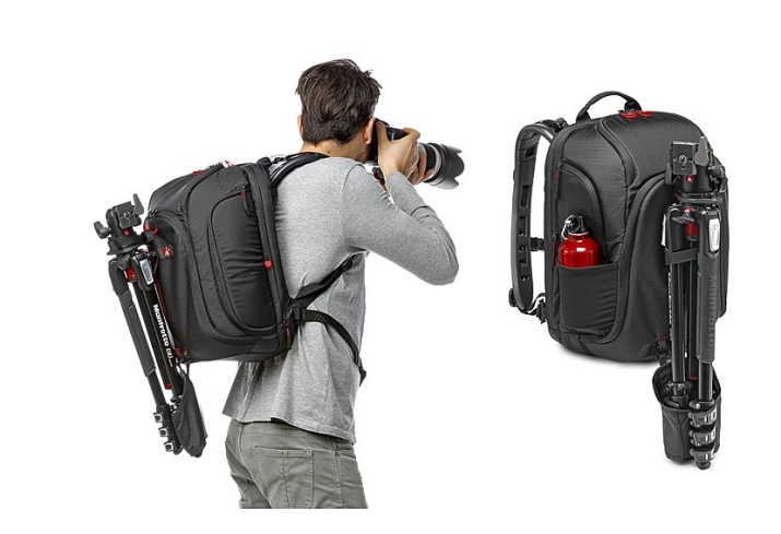 Large photo backpacks contain a full-frame camera, several fixed lenses (portrait, wide-angle, full-time) and a telephoto camera (for example, with a focal length of 70-200 mm). The accessory will fit a battery pack, a flash and batteries for it, cleaning products for optics, and external light. There are models of backpacks to which tripods are attached, as well as those in which reflectors are carried.