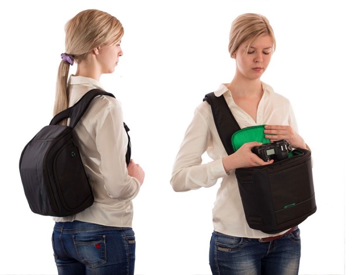 The most common model, presented in different sizes and suitable for the needs of amateurs and professionals. In addition to the main compartment, the accessory is equipped with side and internal pockets for carrying cables, chargers, memory cards or a second lens. Manufacturers create both small photo bags and large ones designed to transport large quantities of equipment.