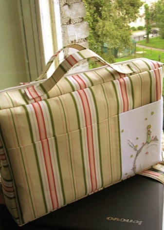 The shape of the bag can also be different. Her choice depends on personal preferences and on the size of the laptop. The device can be placed vertically or horizontally. The laptop must be securely positioned and securely locked.